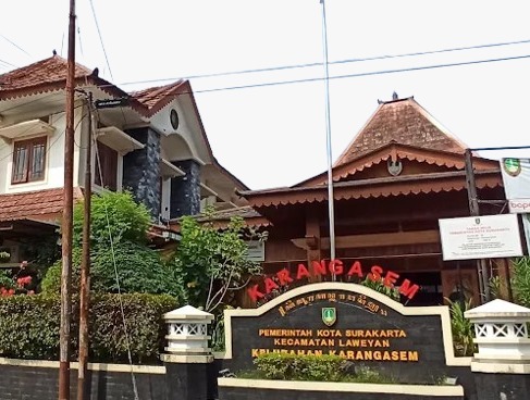 Kantor Kelurahan Karangasem berlokasi di Jl. Tanjung XI RT 01 RW V, Karangasem, Laweyan, Surakarta. Kelurahan Karangasem memiliki batas wilayah di sebelah Utara berbatasan dengan Kelurahan Baturan, Colomadu, Kabupaten Karanganyar, di sebelah Selatan berbatasan Kelurahan Pajang, kecamatan Laweyan Kota Surakarta, di sebelah Barat berbatasan dengan Desa Pabelan , Kecamatan Kartosuro Kabupaten Sukoharjo dan di sebelah Timur berbatasan dengan Kelurahan Jajar, Kecamatan Laweyan Kota Surakarta.